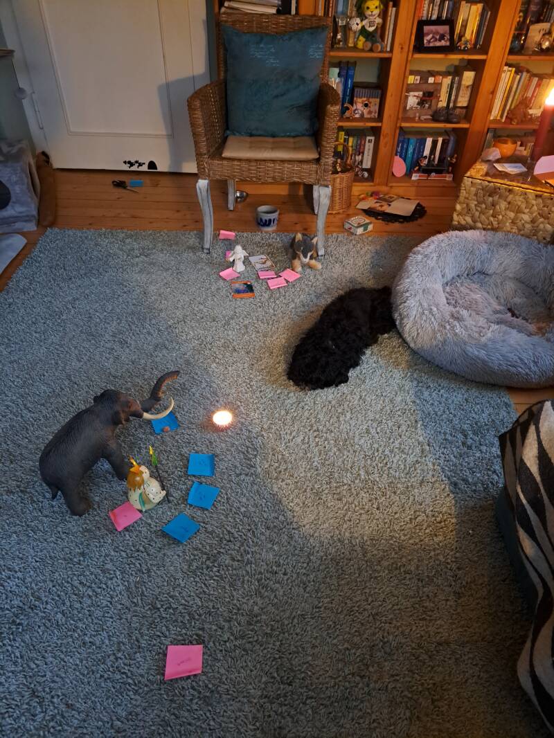 Bei meinen Aufstellungen ist Pepper ebenfalls mit dabei und es ist oft sehr aufschlussreich, wo sie sich hinlegt, wann sie weggeht oder was sie so "anschleppt"!